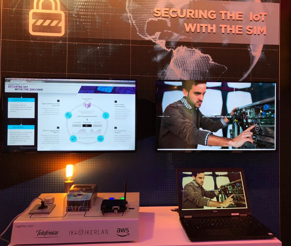 Representatives of the Cybersecure IoT research team from IK4-IKERLAN, together with Telefónica and Amazon Web Services (AWS), show these days an innovative solution to securely connect Internet of Things (IoT) devices to the cloud at Mobile World Congress, the flagship event of the telecommunication industry hosted in Barcelona. The demonstrator which will be unveiled in Barcelona introduces an innovative solution based on SIM cards to securely distribute certificates to connect devices to Amazon Web Services IoT (AWS IoT).